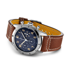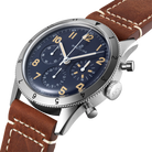 The all-blue dial, protected by a highly-domed Hesalite crystal, has the same Arabic numerals than the original Co-Pilot, with tone-on-tone small second, 15-minute and 12-hour chronograph counters. The hand-applied Super-LumiNova color has been carefully chosen to recall the original luminescent material and gives the AVI 1953 Edition an additional touch of vintage allure. The AVI 1953 Edition features a 41mm platinum case with a water resistance up to 3 bar (30 meters).
