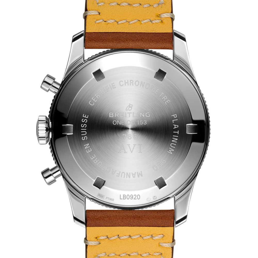 The AVI 1953 Edition is powered by the in-house Breitling Manufacture Caliber B09, a hand-wound COSC-certified caliber based on the renowned Breitling Caliber 01. It is available on a gold vintage-inspired leather strap with an 18k white gold pin buckle as a limited-edition of 153 pieces, each of which is engraved “ONE OF 153”.