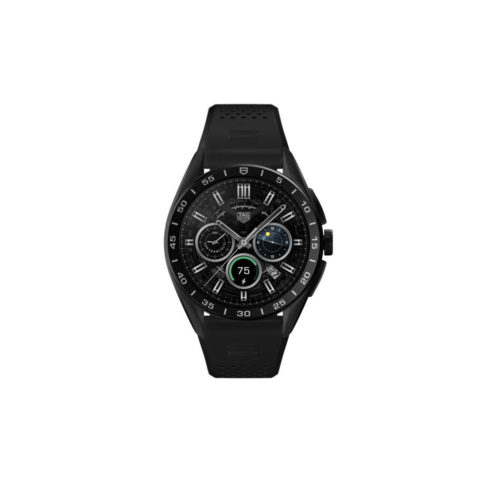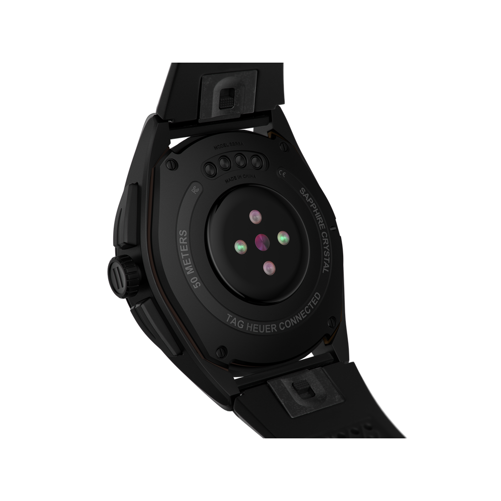 Taking watchmaking to new heights, this TAG Heuer Connected Watch offers a seamless blend of luxury and performance. The chronograph style 45mm case is crafted from ultra-light titanium grade 2, with a matt sandblasted DLC finishing.