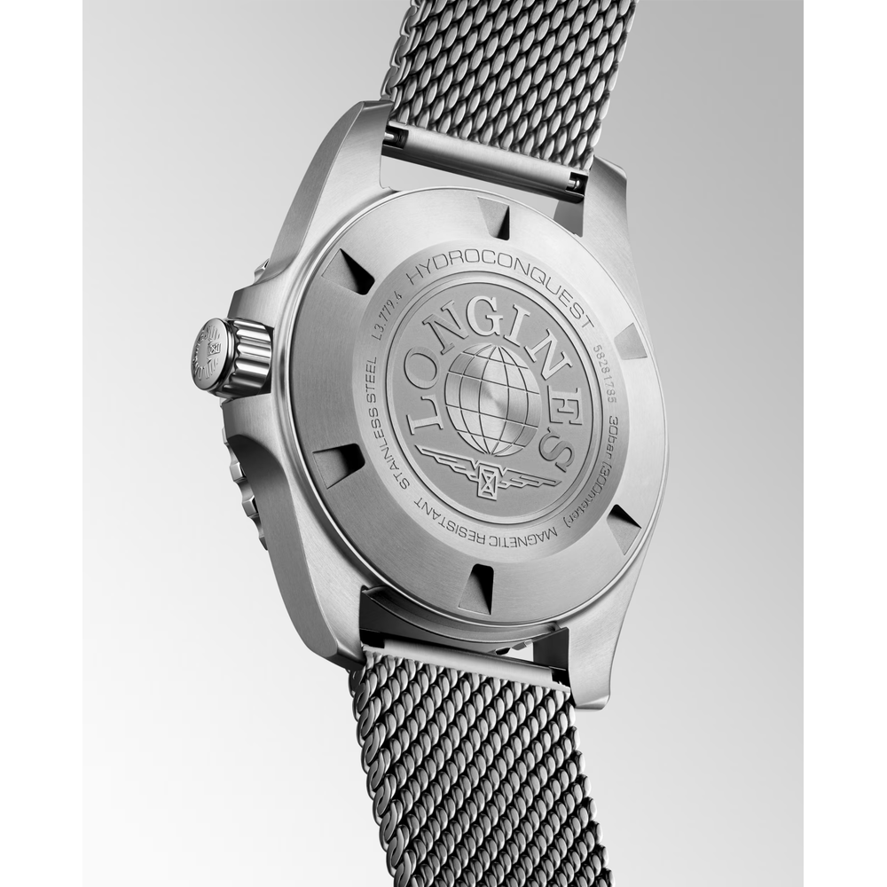 The HYDROCONQUEST collection blends modern aesthetics with proven performance. Powered by an exclusive LONGINES automatic calibre, water-resistant up to 30 bar (300 m), with unidirectional bezel, screw-in crown and screw-down case back.