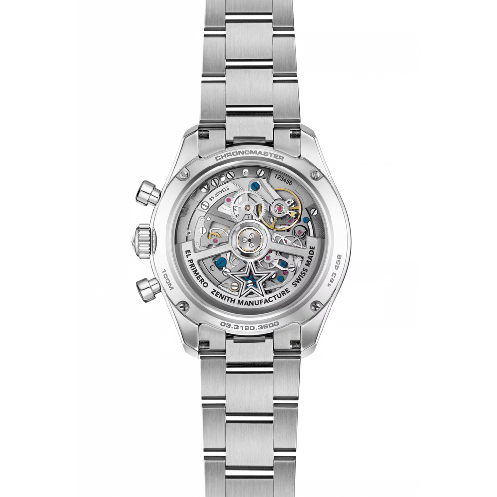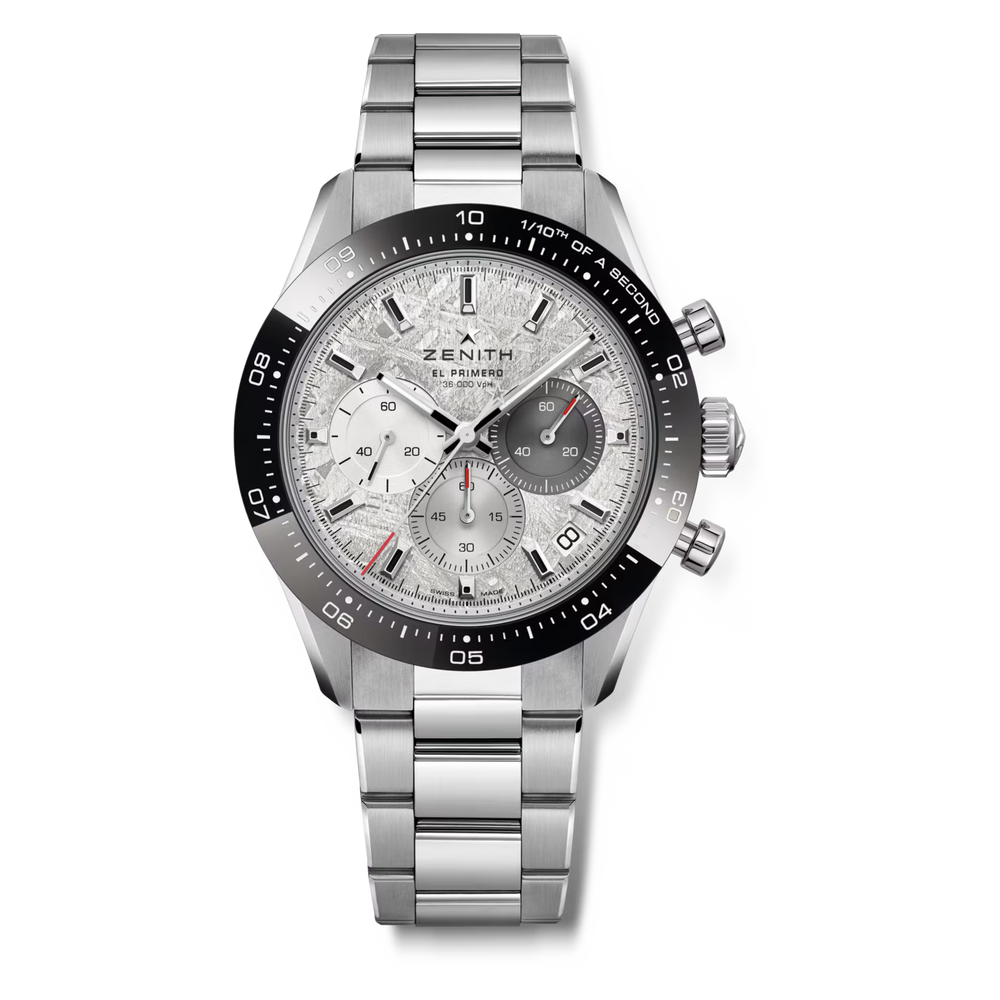 The CHRONOMASTER Sport is crafted in a 41mm stainless steel case with a ceramic bezel. Its meteorite dial features the brand’s signature 3-6-9 tricolour overlapping counters. Powered by the El Primero 3600 automatic high-frequency chronograph movement with 1/10th of a second chronograph function and a power reserve of 60 hours.Delivered with a steel bracelet and an additional black rubber strap.