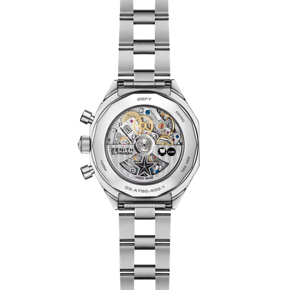 This sporty chic chronograph was imagined as an answer to the question: What if the 1969 DEFY had been equipped with the groundbreaking El Primero, the world’s first high-frequency automatic chronograph? It also draws inspiration from another design icon of the same period, the USM Haller system. Stainless steel octagonal case and ladder bracelet. USM Golden Yellow dial with applied square hour markers.Exclusive limited edition of 60 pieces.Accompanied by a custom-designed USM Modular furniture and a unique watch box created specifically for this edition.