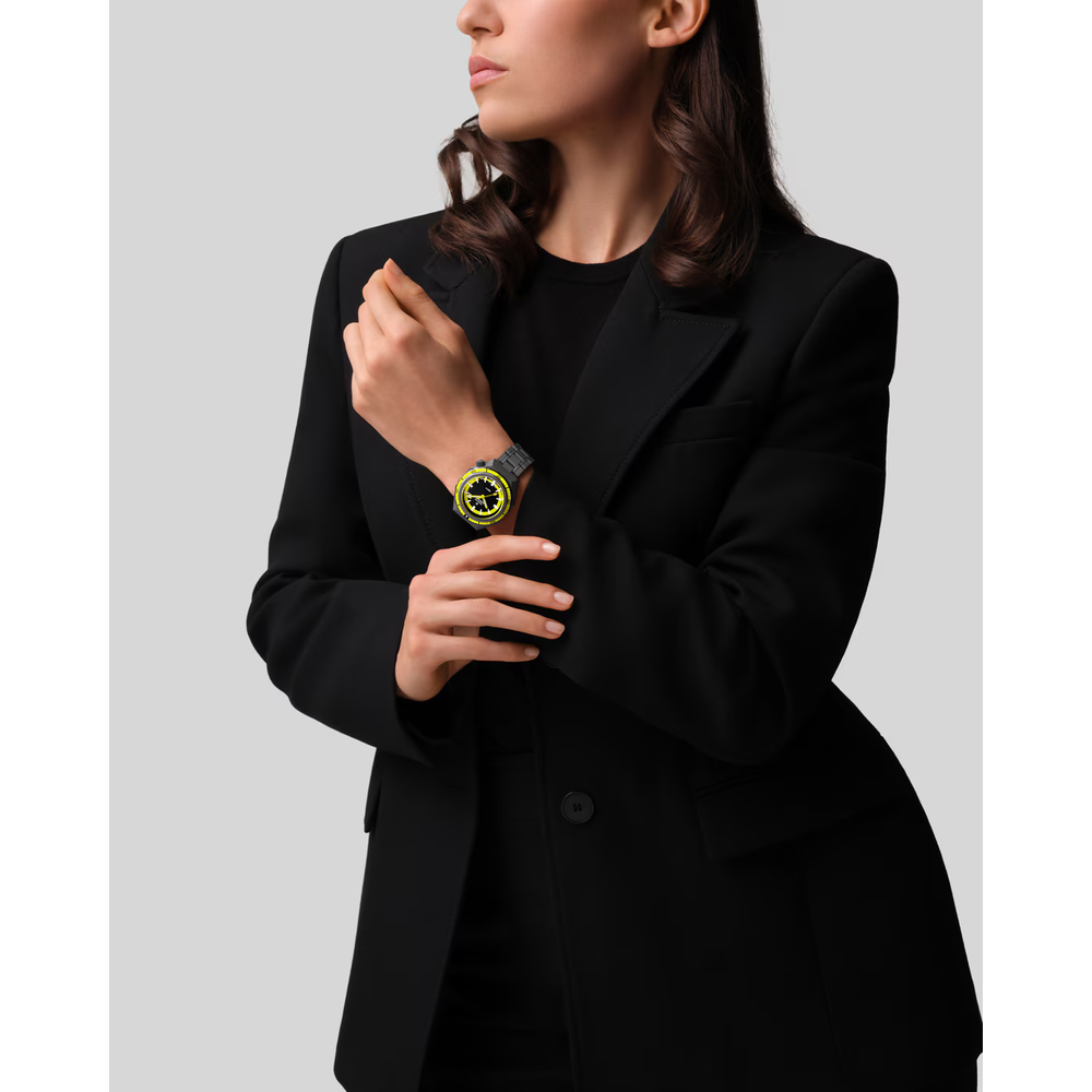 (600 metres). Black and yellow dial with luminescent hands and markers. Powered