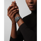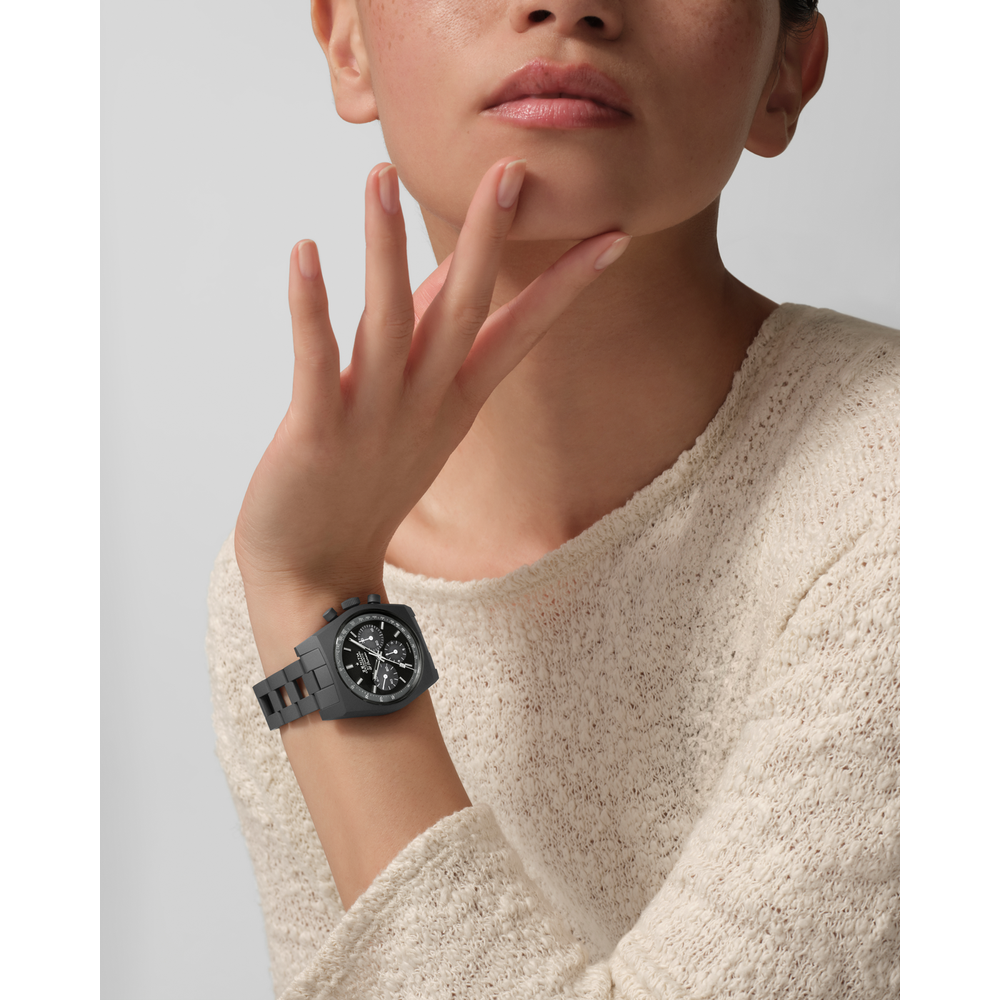 The CHRONOMASTER Revival Shadow mimics the look of an obscure ZENITH chronograph prototype from the 1970s that featured a blackened case. Here, the stealthy look is reproduced with an entirely matte finished titanium case. The black dial foregoes the seconds track and the date window. Paired with a microblasted titanium bracelet with folding clasp.