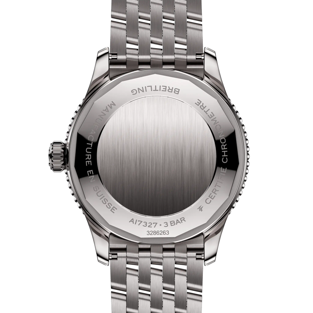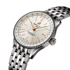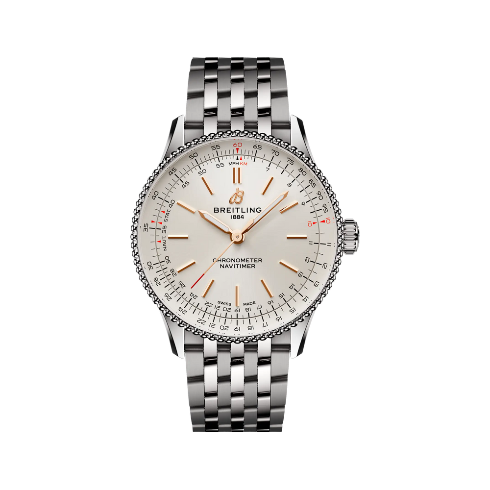 Unsere Ikone kommt jetzt in den Grössen 36 und 32 mm für Frauen und Männer, die die Optik und Haptik einer Uhr mit kleinerem Durchmesser lieben. Während die 36-mm-Navitimer die Perlenlünette und den ikonischen kreisförmigen Rechenschieber aufweist, die der Navitimer ihr unverkennbares Aussehen verleihen, verzichtet die beeindruckende 32-mm-Variante auf den Rechenschieber zugunsten eines schlichteren Zifferblattdesigns, das auf den schlanken Durchmesser abgestimmt ist.