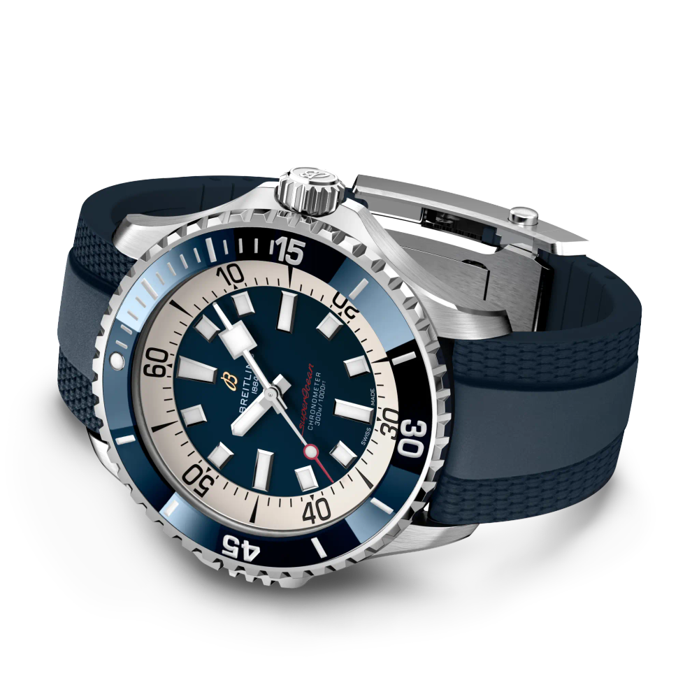 Das Allerbeste: Dies ist nicht länger eine reine Taucheruhr – surfen Sie mit ihr, schwimmen Sie mit ihr, besuchen Sie die Strandbar mit ihr und tragen Sie sie dann zum Dinner. Die Superocean ist die perfekte Balance zwischen nostalgischem Vermächtnis und einem frischen, neuen Look.