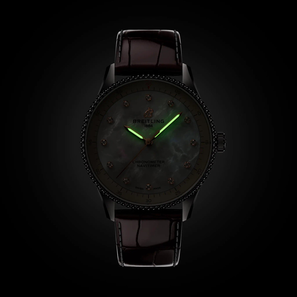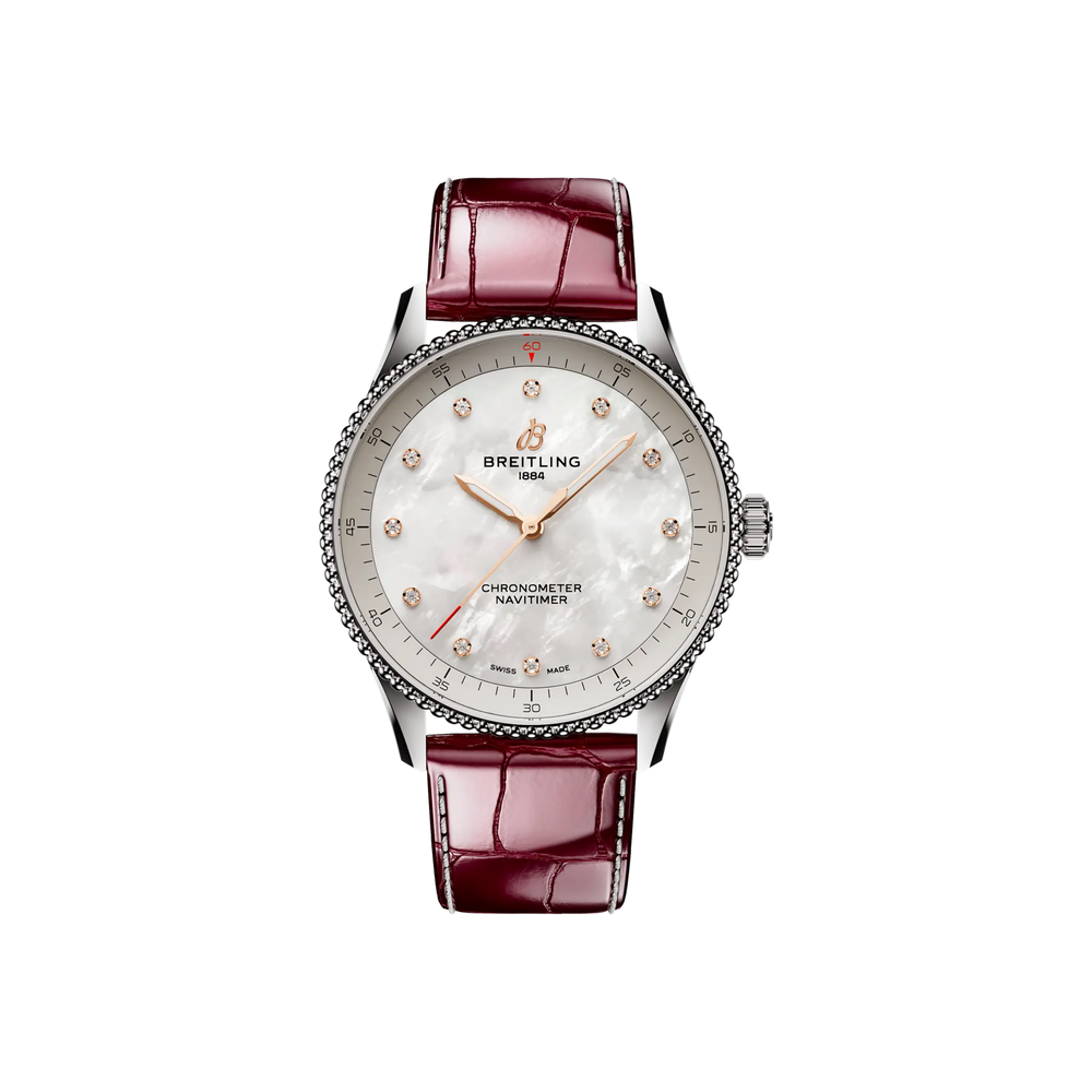 Unsere Ikone kommt jetzt in den Grössen 36 und 32 mm für Frauen und Männer, die die Optik und Haptik einer Uhr mit kleinerem Durchmesser lieben. Während die 36-mm-Navitimer die Perlenlünette und den ikonischen kreisförmigen Rechenschieber aufweist, die der Navitimer ihr unverkennbares Aussehen verleihen, verzichtet die beeindruckende 32-mm-Variante auf den Rechenschieber zugunsten eines schlichteren Zifferblattdesigns, das auf den schlanken Durchmesser abgestimmt ist.