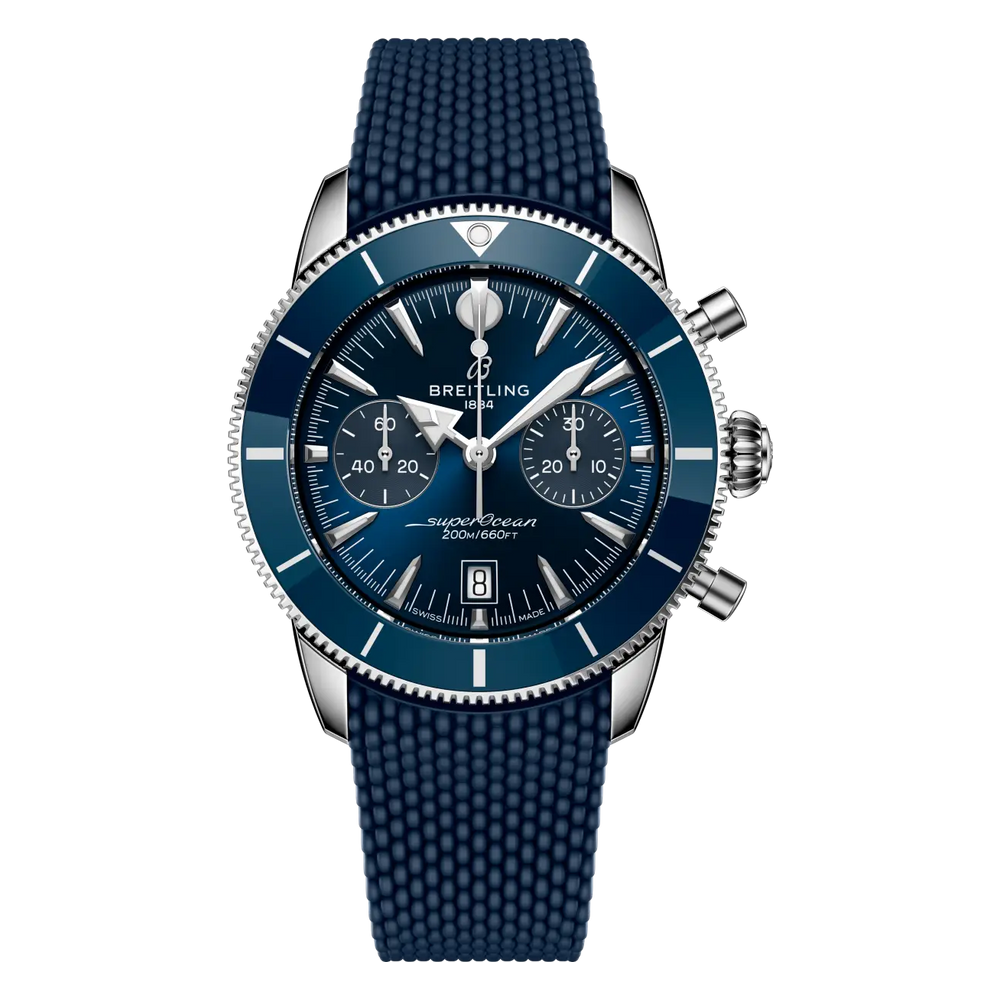 Die neueste Superocean Heritage baut auf allem auf, was das Original unverwechselbar gemacht hat, und verfeinert es. Der Chronograph wird vom Breitling-Manufakturkaliber 01 angetrieben, dem branchenführenden Uhrwerk von Breitling. Eine Lünette mit Keramikeinlage bietet außergewöhnliche Kratzfestigkeit, während die integrierten Armbänder aus Mesh-Metall oder Mesh-Kautschuk eng am Gehäuse anliegen und mit Faltschließen für ein sauberes, wasserdichtes Finish gesichert werden. Ton-in-Ton-Hilfszifferblätter, ein diskretes Datumsfenster auf sechs Uhr und die originalen Signaturzeiger – Pfeil für die Stunden, Speer für die Minuten – sorgen für Ablesbarkeit und Ausgewogenheit, über oder unter der Oberfläche.
