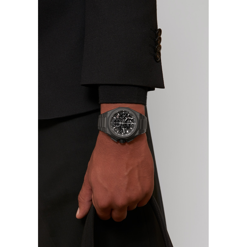 Zifferblatt: Getöntes Saphirglas mit drei schwarz gefärbten Zählern