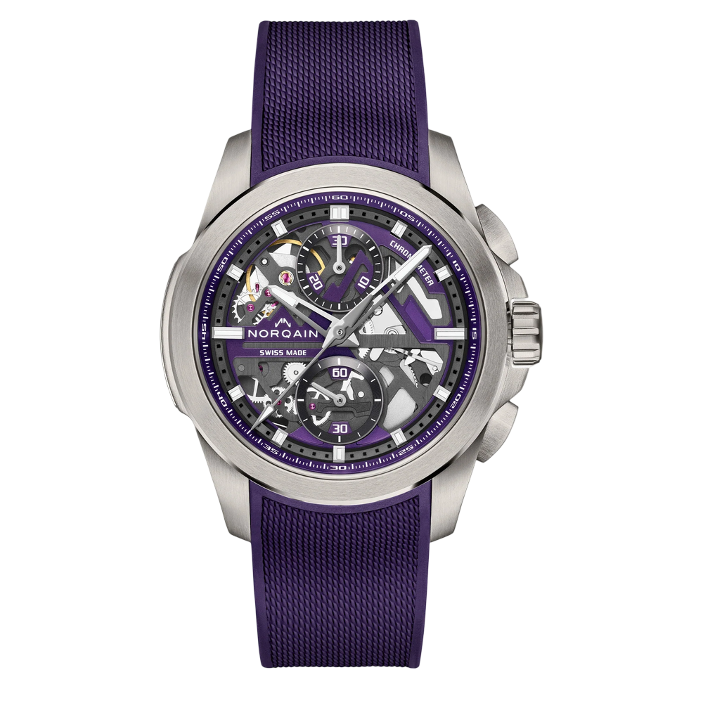Skelettiertes, satiniertes violettes und schwarzes Zifferblatt