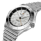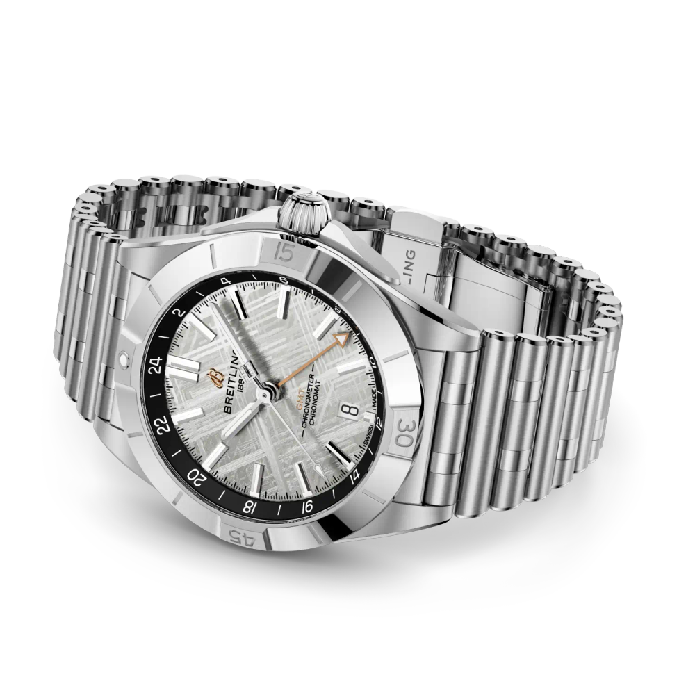 Breitlings vielseitiger Chronomat 40 GMT Erling Haaland ist eine limitierte Auflage, die zusammen mit dem Fußballstar selbst entworfen wurde. Der auf nur 500 Exemplare limitierte Chronomat 40 GMT Erling Haaland aus Edelstahl verwendet ein Zifferblatt, das aus dem 4,5 Milliarden Jahre alten Meteoriten Muonionalusta geschliffen wurde, und trägt Erlings Initialen auf dem Gegengewicht des zentralen Sekundenzeigers. Es ist das erste Mal, dass wir dieses überirdische Material verwenden, aber in Anbetracht seiner Verbindung zu einem Fußballer mit außergewöhnlichen Fähigkeiten war es ein guter Zeitpunkt, es einzuführen. Der Chronomat 40 GMT Erling Haaland verfügt über die klassischen Spezifikationen und Designelemente, die sie zu Ihrem perfekten Allrounder machen: das klassische, integrierte „Rouleaux“-Edelstahlarmband oder Kautschukband, erhabene Reiterlaschen, 200 m Wasserdichtigkeit und eine verschraubte Krone. Die Limitierung „One of 500“ ist auf dem massiven Gehäuseboden eingraviert. Die Uhr wird in einer hölzernen Präsentationsbox geliefert, die mit einem signierten Dankesschreiben von Haaland versehen ist, das den persönlichen Charakter der Zusammenarbeit unterstreicht. Für diejenigen, die Erlings Kraft, Geschwindigkeit und kreativen Spielstil nachvollziehen können, oder für diejenigen, die ein vielseitiges Stück mit einem einzigartigen Zifferblatt zu schätzen wissen – kein Zifferblatt gleicht dem anderen – ist dies Ihre ideale Wahl.