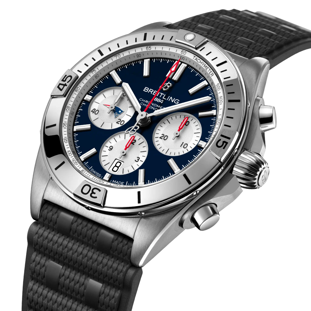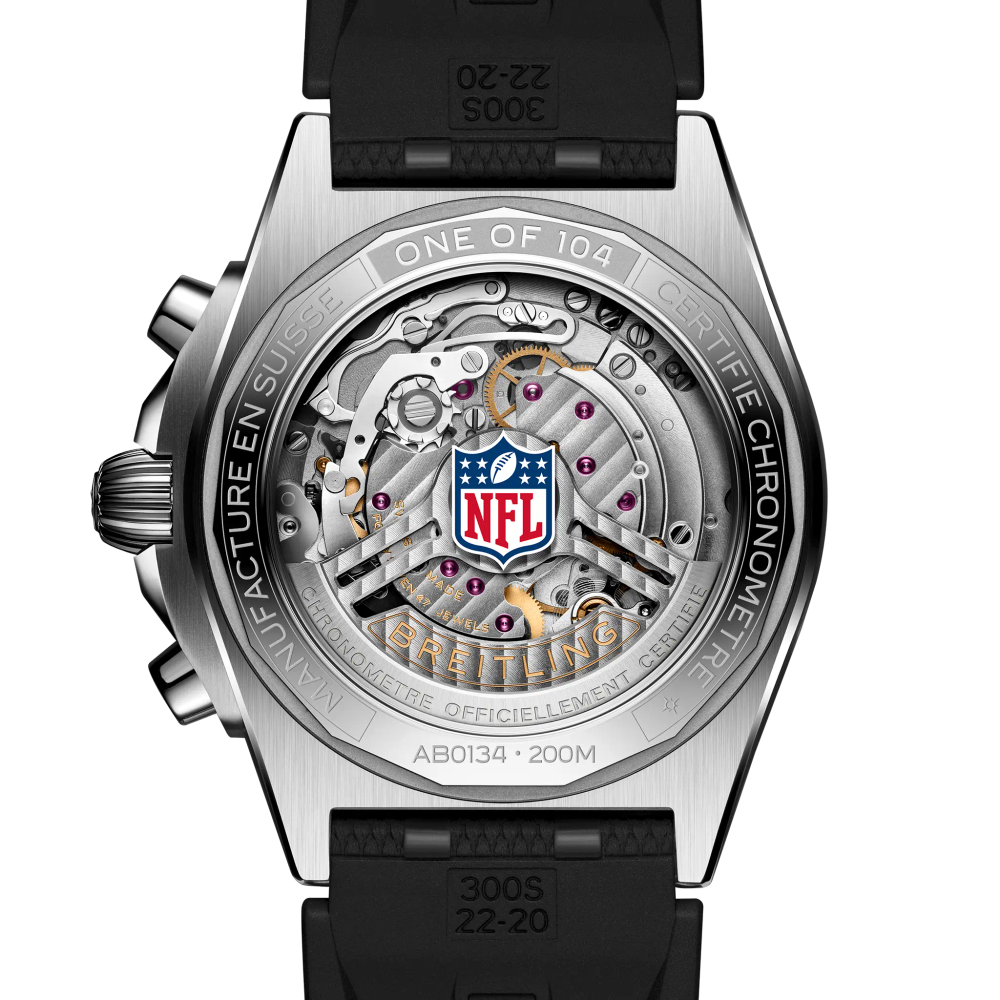 A match-up as exciting as Super Bowl. Breitling, under exclusive license with the National Football League (NFL), celebrates all 32 teams with the Chronomat B01 42 NFL Team Editions—a limited series available exclusively in the U.S. Each watch is powered by Breitling’s flagship Manufacture Caliber 01 and produced in just 104 pieces per team. The dial features your team’s colors, while the caseback bears the NFL shield and the engraved “One of 104” limitation. Available on a stainless-steel or rubber Rouleaux bracelet, this is a confident Chronomat made for die-hard fans who want to rep their team in style. It’s always game on.