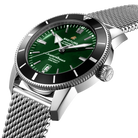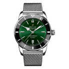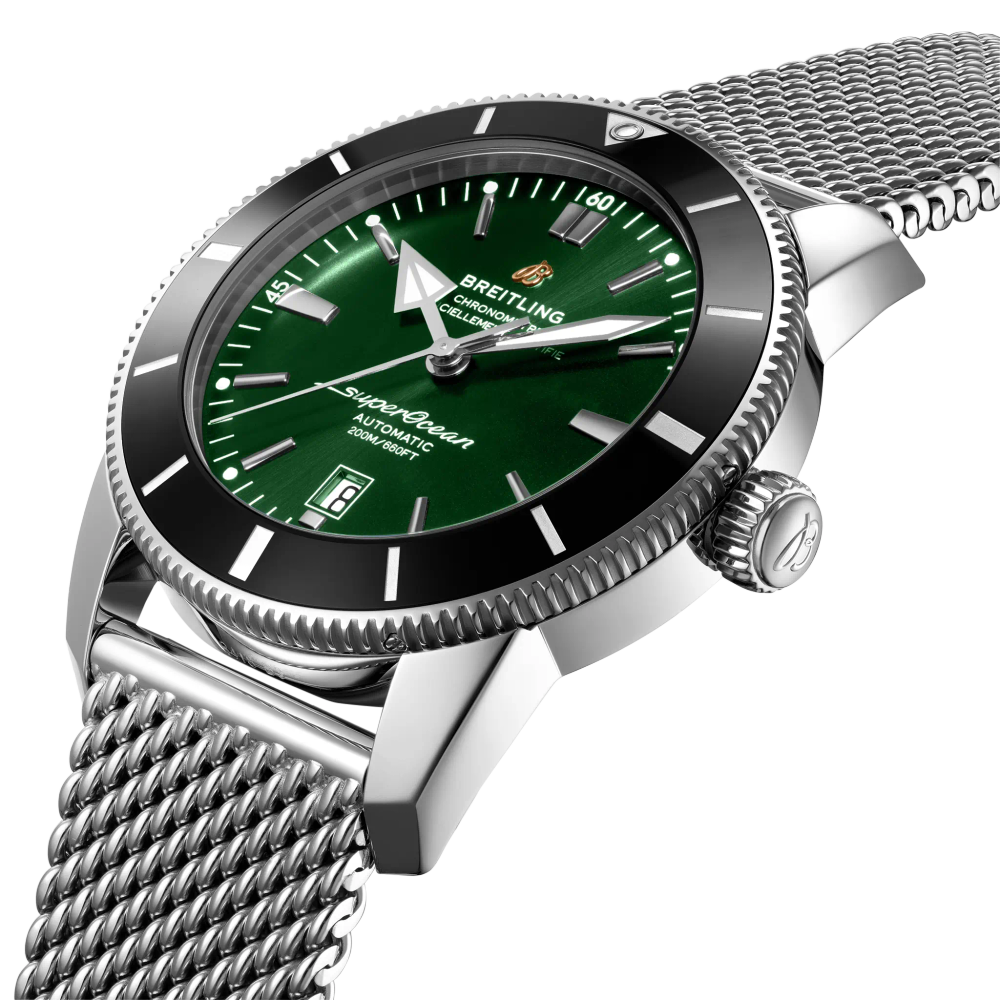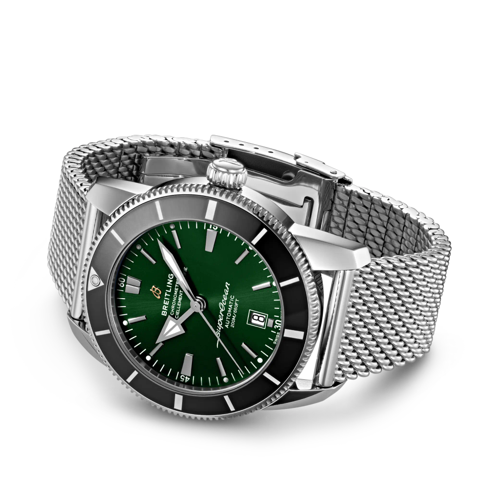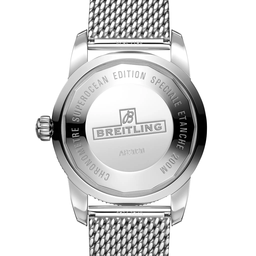 Featuring the iconic triangular-shaped hands as well as a unidirectional bezel with a polished ceramic ring, the Superocean Heritage is an elegant diver’s watch. Available in a variety of sizes and materials including stainless steel and 18k red gold, the Superocean Heritage B20 Automatic features a range of colored dials. Offered either with a matching mesh bracelet, or a “mesh-styled” rubber strap fitted with a folding buckle, this Superocean Heritage is powered by the Breitling Manufacture Caliber B20, a COSC-certified chronometer based on the Tudor Caliber MT5612.