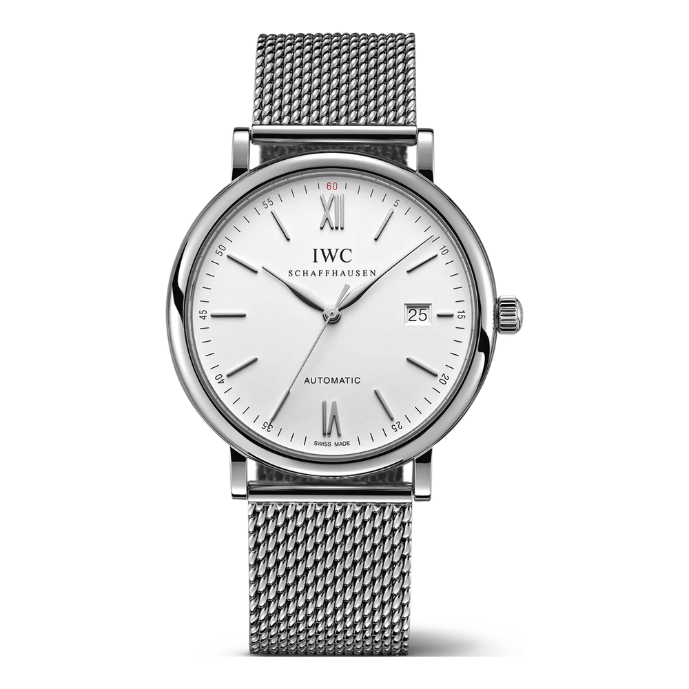 The fine stainless-steel Milanaise bracelet moulds itself snugly round the wrist and gives this version of the Portofino Automatic a very special appeal.