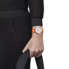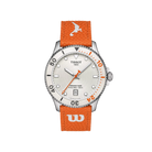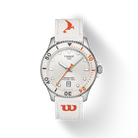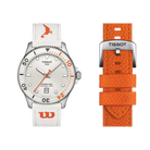 The Tissot Seastar Wilson WNBA watch is a special edition timepiece designed in collaboration between Tissot and Wilson Sporting Goods to celebrate the Women's National Basketball Association (WNBA). This new edition is powered by a high-quality Swiss Made quartz movement, known for its precision and reliability. This model features a uni-directional rotating bezel that incorporates the 24-second basketball shot clock time, showcasing Tissot’s role as Official Timekeeper of the WNBA. It is accentuated by white and orange details, mirroring the colors of the WNBA’s iconic game ball. This watch comes with two interchangeable straps made of Wilson’s WNBA Evo-NXT premium composite game ball material, showcasing Wilson’s role as the Official Basketball of the WNBA. This watch is ideal for those seeking a sporty accessory that ensures technical superiority.