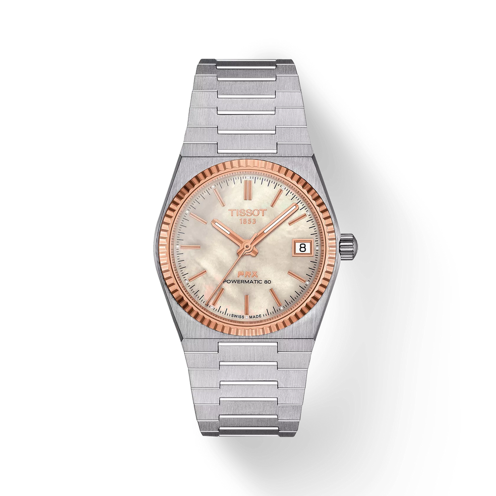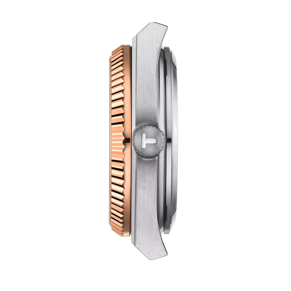 If you’re looking for a slim, smooth watch with an authentic ‘70s feel, look no further than the PRX Powermatic 80. Created for those with an eye for design and packed with twenty-first century features in a Tissot case shape from 1978, the PRX is a must-have on every watch fan’s wish list. The self-winding Powermatic 80 movement delivers reliability and precision thanks to the innovative Nivachron hairspring. With 80 hours of power reserve, it’s a modern movement designed to keep pace with busy lifestyles. This version of the Tissot PRX Powermatic 80 features a 18K gold bezel, bringing character and elegance to this masterpiece.